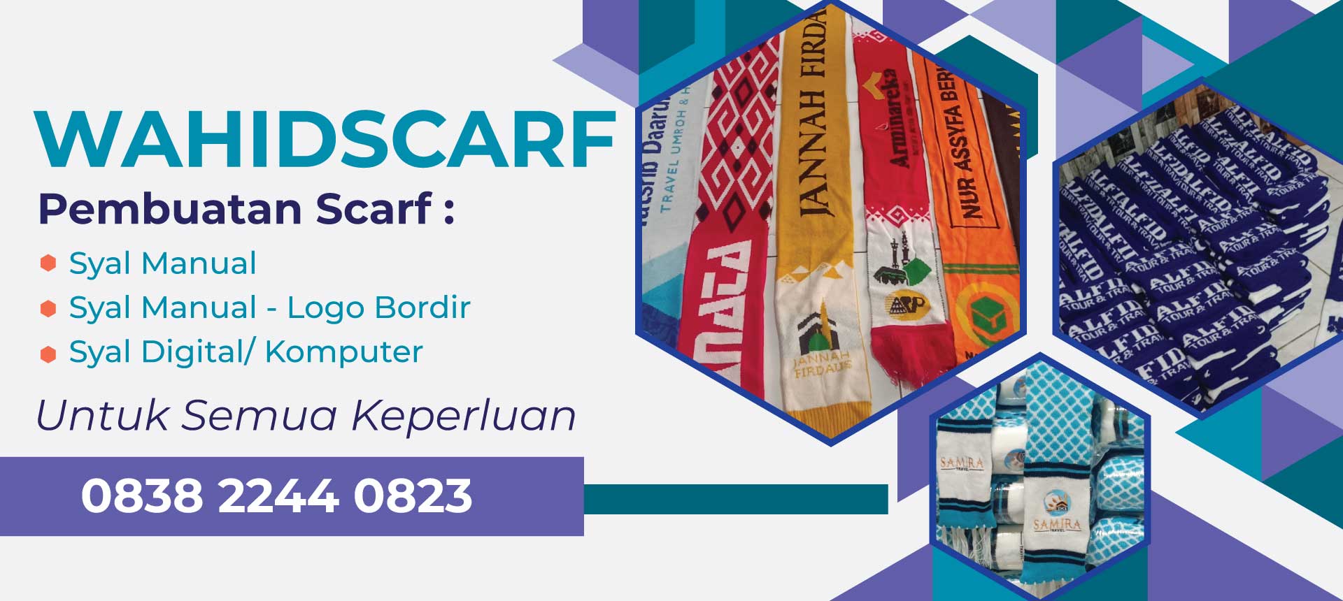Wahid Scarf menawarkan layanan pembuatan syal manual, manual – bordir, hingga digital/ komputer untuk berbagai keperluan. Berlokasi di Kota Bandung, Wahid Scarf menerima pesanan pembuatan syal dari seluruh Indonesia. Dengan pengalaman lebih dari 10+ tahun, kami sudah menyelesaikan ratusan ribu syal pesanan. Syal buatan kami biasa digunakan untuk keperluan komunitas, jamaah haji & umrah, organisasi, sekolah, perguruan tinggi, suporter olahraga, dan lainnya.